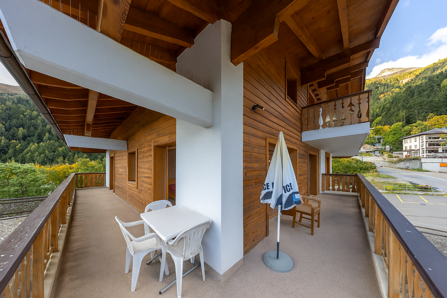 - Einen umlaufenden Balkon von 40 m² mit Ausrichtung Ost – Süd – West und spektakulärer Aussicht auf die Berge und das Dorf