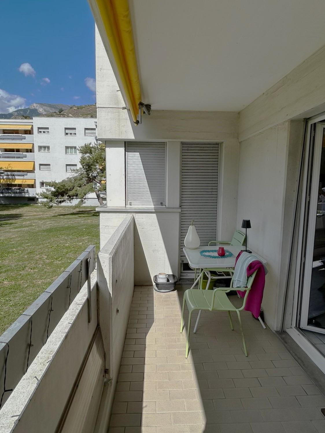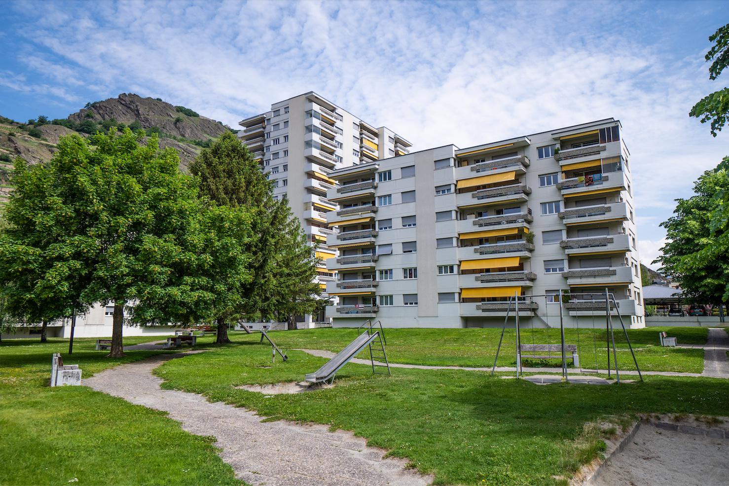 Angenehme 3.5-Zimmer-Wohnung in einem Wohngebäude am Stadteingang von Sitten, in der Nähe der Autobahnanbindung und nur wenige Fahrminuten vom Stadtzentrum entfernt.