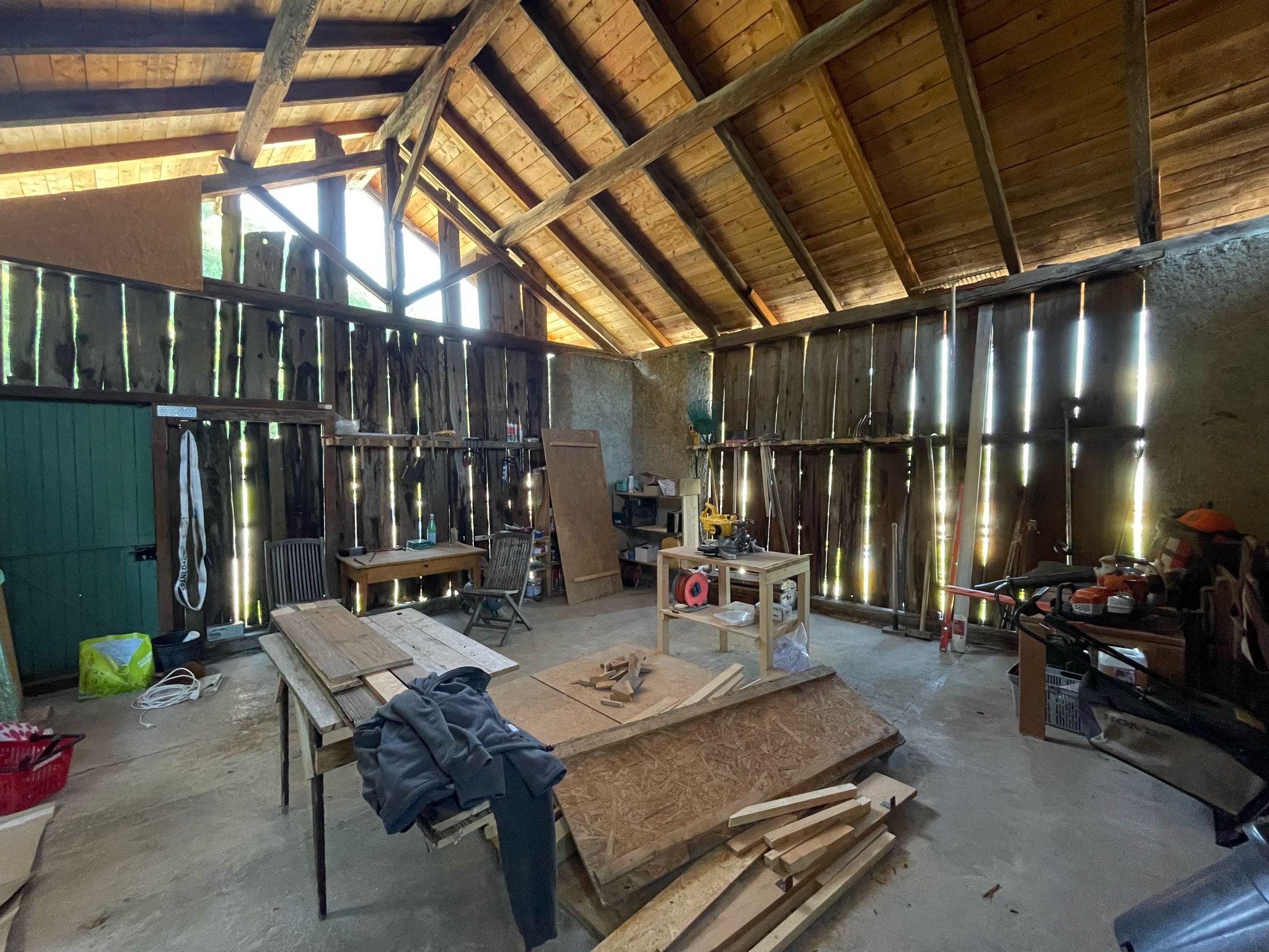 Die Scheune befindet sich auf einem grünen Grundstück von 245 m² und verfügt über eine Fläche von ca. 86 m², die sich auf zwei unabhängige Ebenen verteilt: