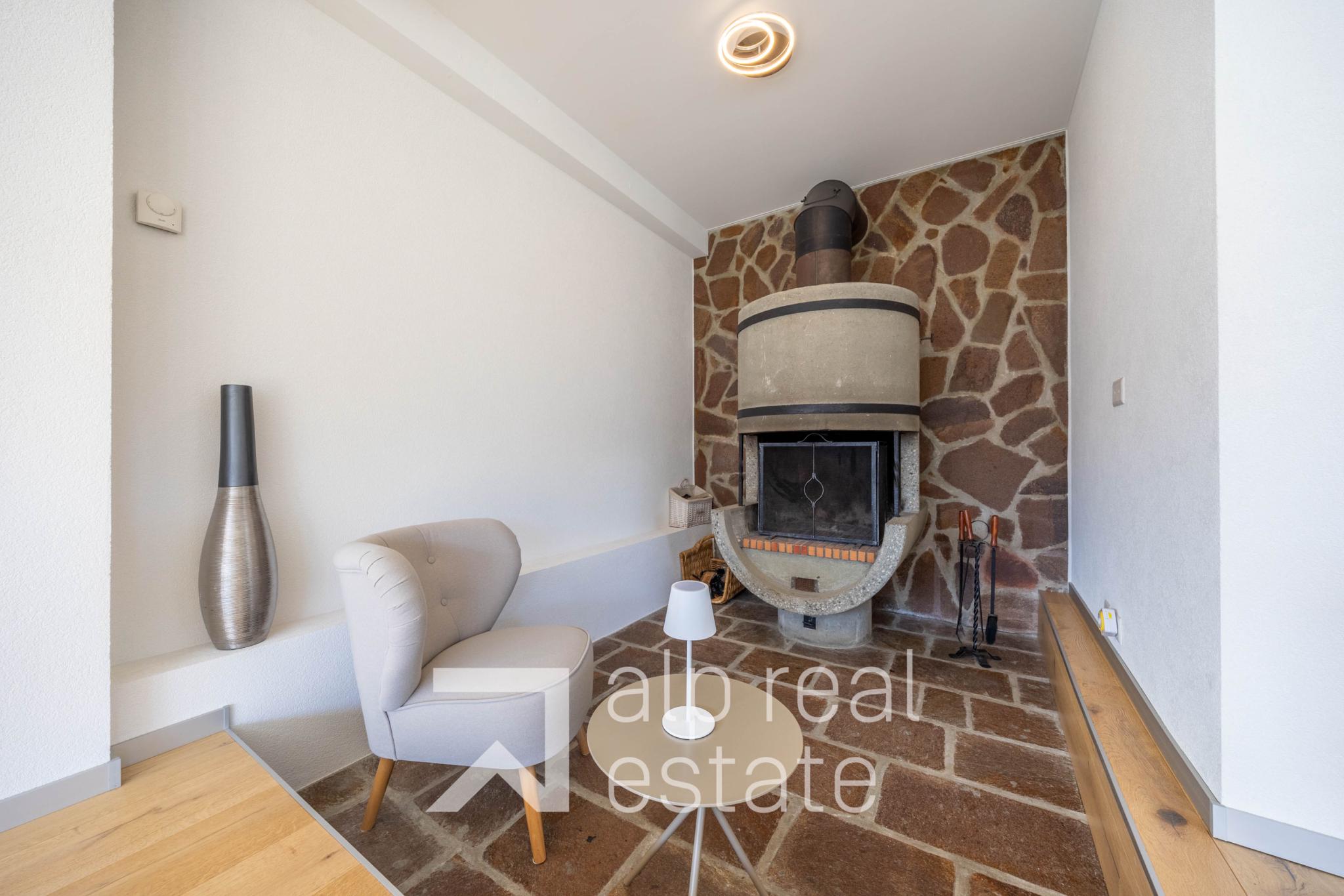 The terrace paved with natural stone and the south-facing balcony bathe the interior in light, offering a constant connection to the outdoors and a feeling of openness and freedom.