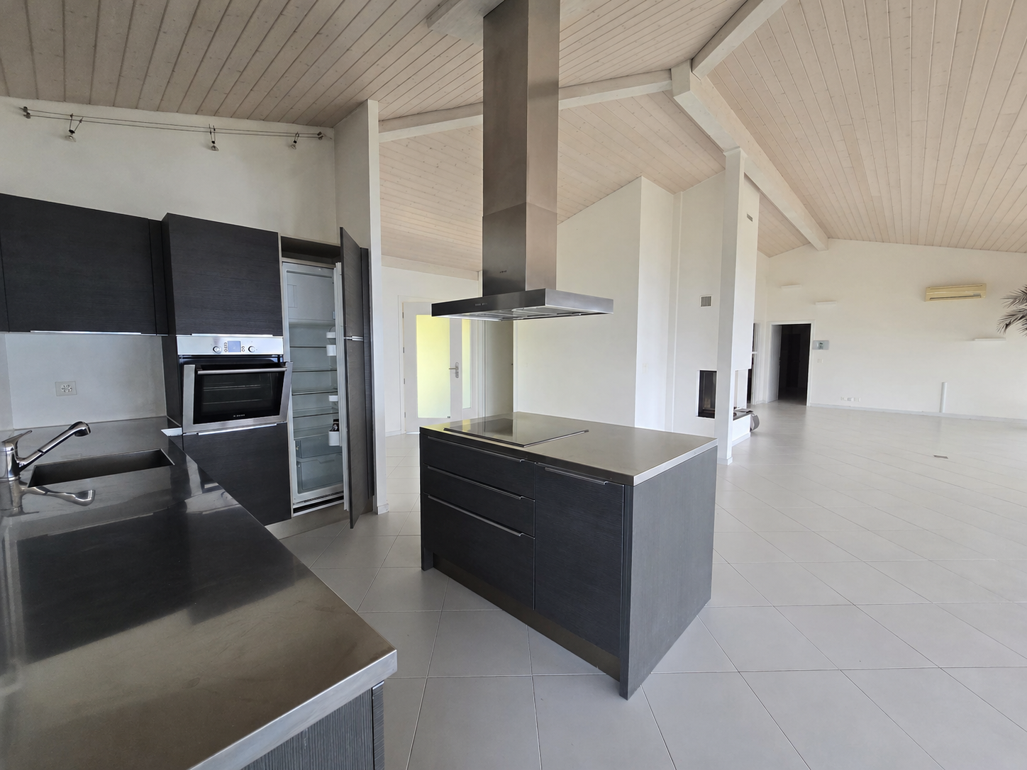 - A modern open-plan kitchen with a worktop, seamlessly integrated into the living space