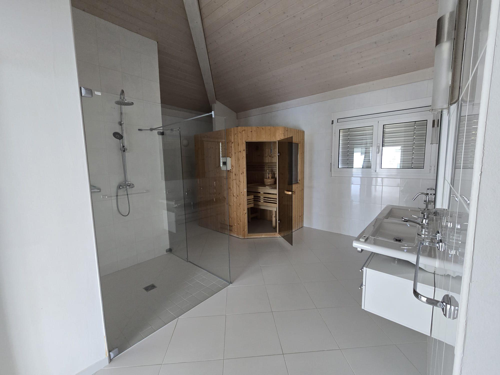 A double indoor garage (2 parking spaces) completes this property, available at an additional price of CHF 100,000.–.