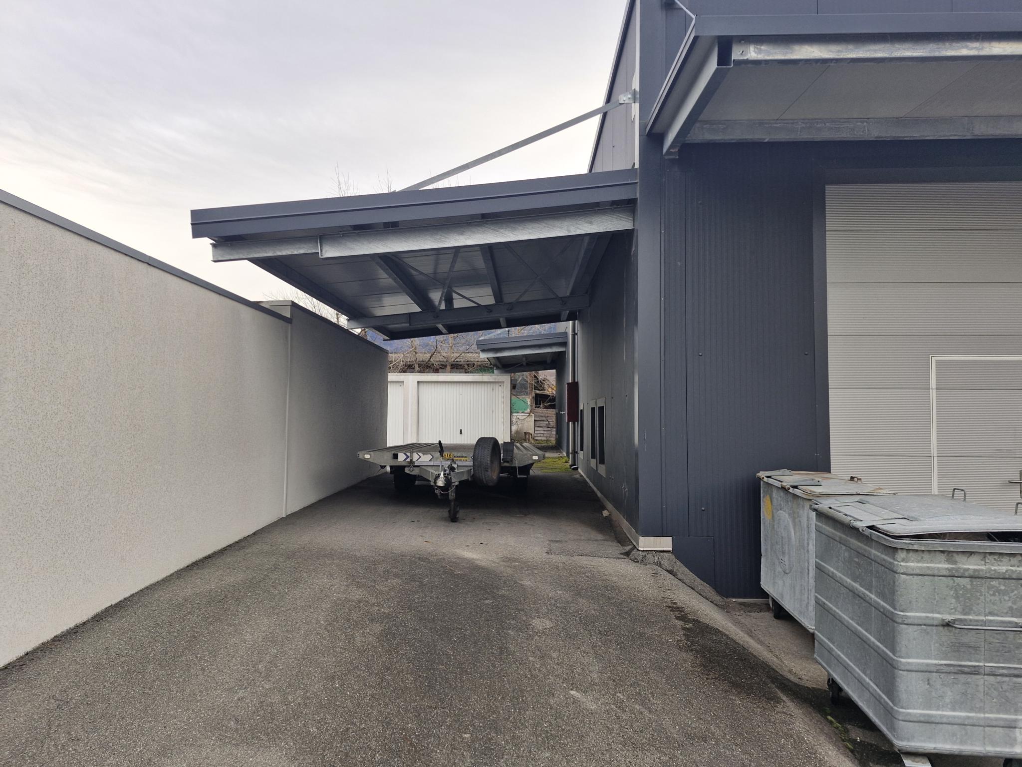 À louer à Grône, en Valais central, halle métallique construite en 2016, idéale pour activité artisanale, industrielle légère, stockage ou atelier.