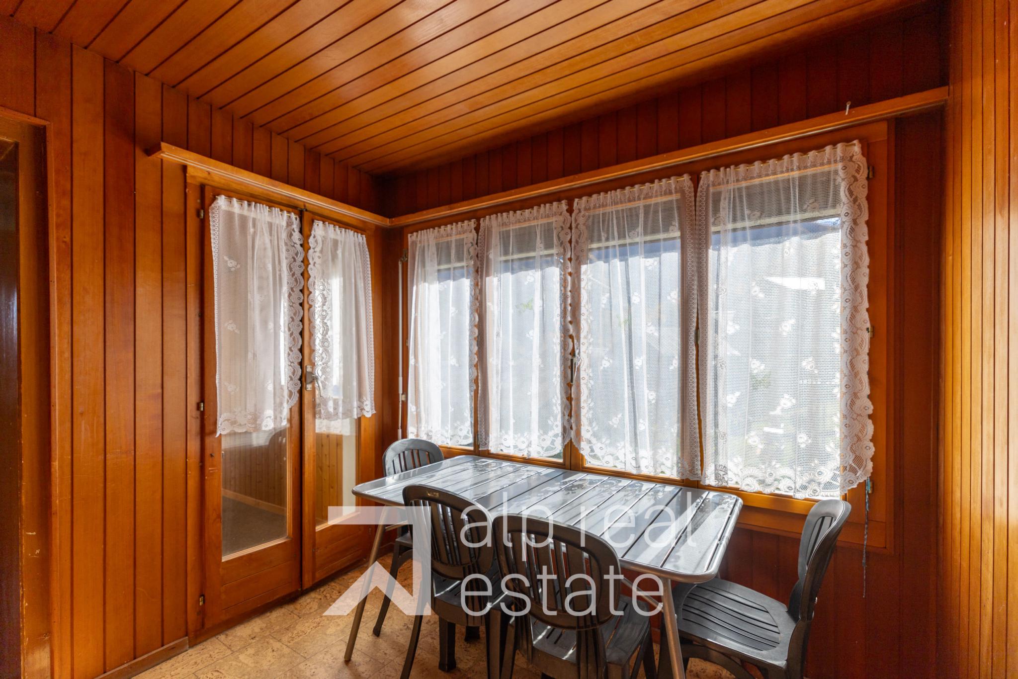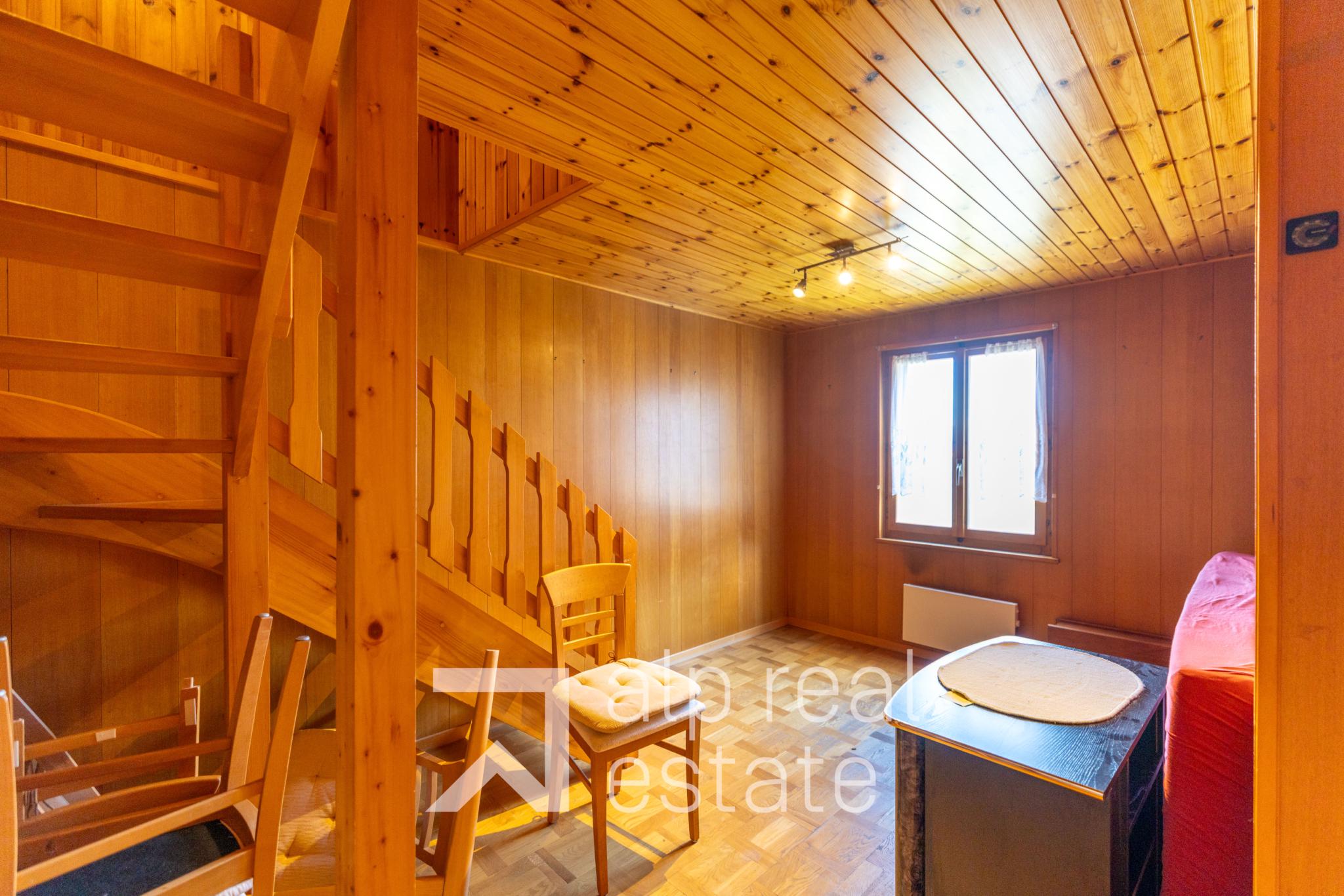 - un appartement d'1.5 pièce avec terrasse au rez-de-chaussée, actuellement loué 600 CHF/mois, mais peut-être libéré rapidement.